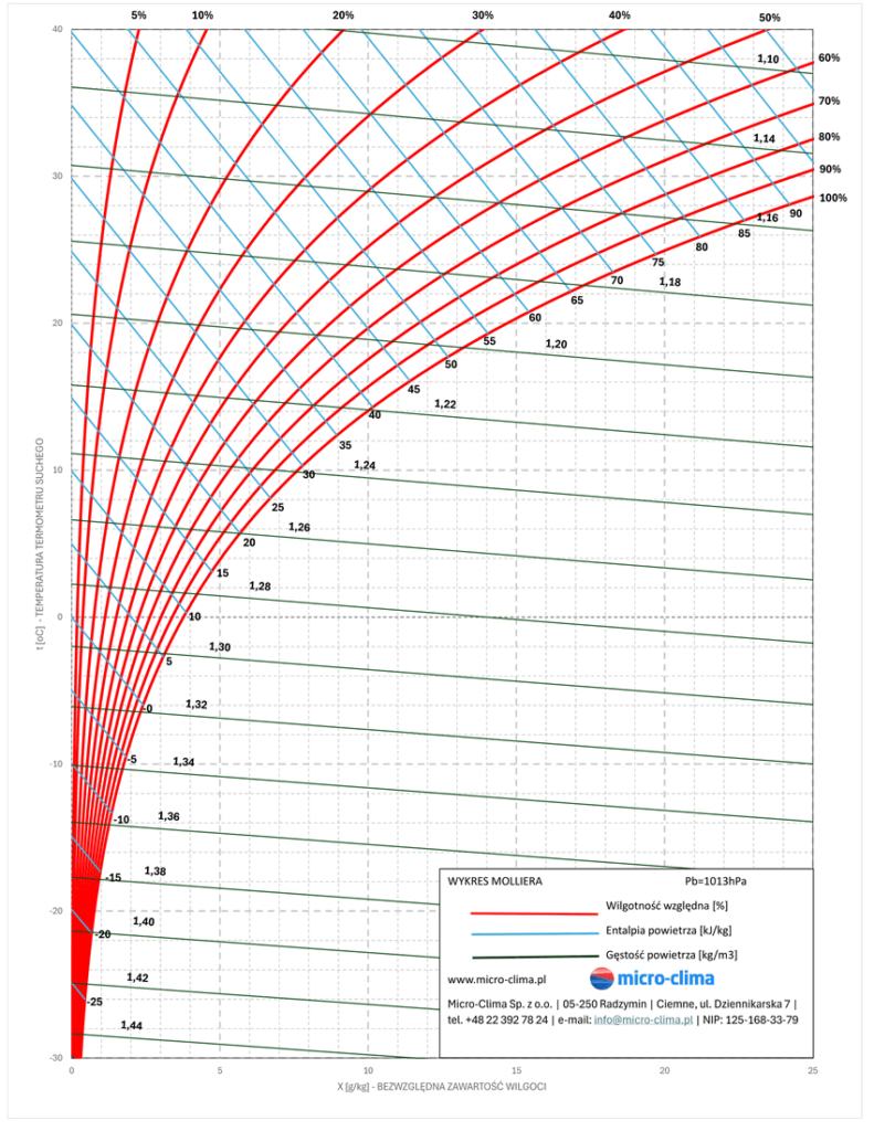 Wykres Molliera (nazywany czasami wykresem i-x lub h-x) jest podstawowym narzędziem pozwalającym na określenie parametrów powietrza wilgotnego.